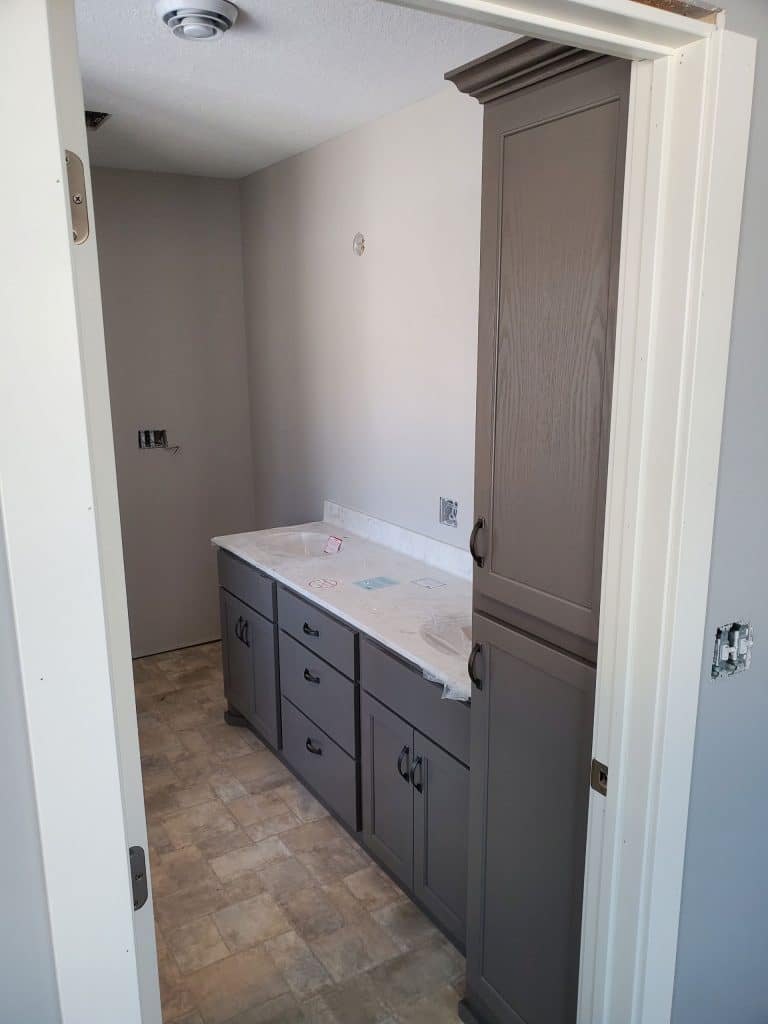 This custom stained birch kitchen blends warmth and functionality with refined craftsmanship. The rich birch cabinetry is complemented by special glass doors with muttons, adding elegance and visual interest. A cozy integrated bench creates a welcoming touch, while quartz countertops and a classic farm sink provide both durability and timeless style. Floating shelves complete the […]