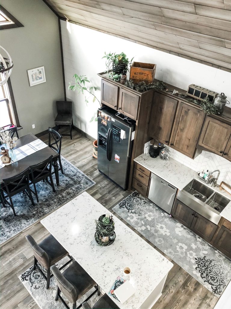 This kitchen combines the natural warmth of rustic hickory with the refined elegance of quartz countertops. The cabinetry features a custom stain match that enhances the wood’s rich grain and character, creating a perfectly balanced look of rustic sophistication. A classic farm sink adds timeless charm and everyday functionality, making this space both beautiful and