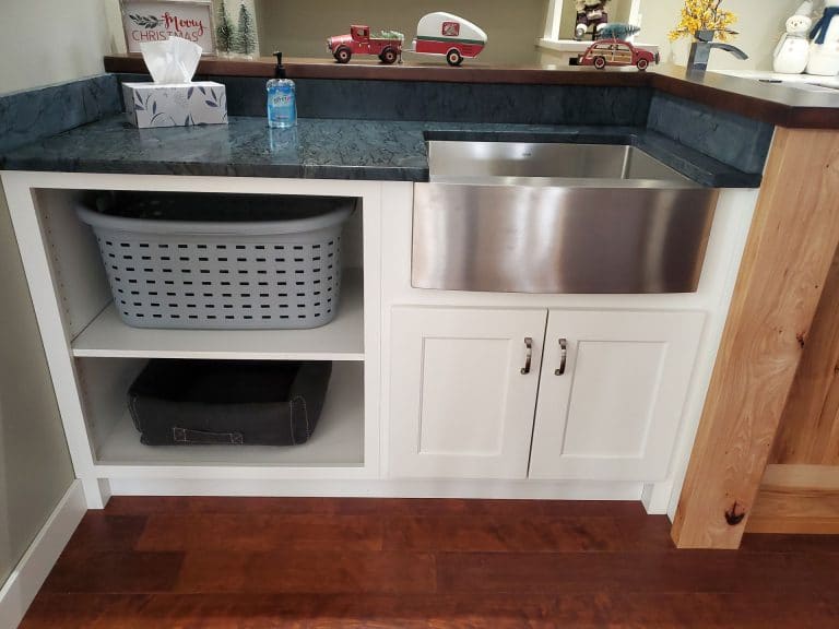 This custom design features T-mission inset doors that bring a clean, craftsman-inspired style to the space. Thoughtful details like built-in
