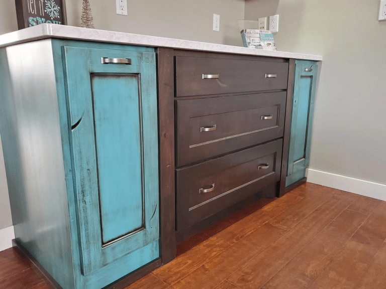 Crestwood Showroom Teal Paint and Glazed Against Alder: Hager City, WI