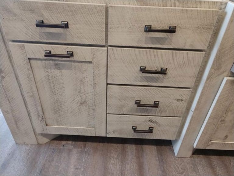 This Forever Barnwood island serves as a stunning focal point, featuring a beautiful white wash finish that highlights the natural